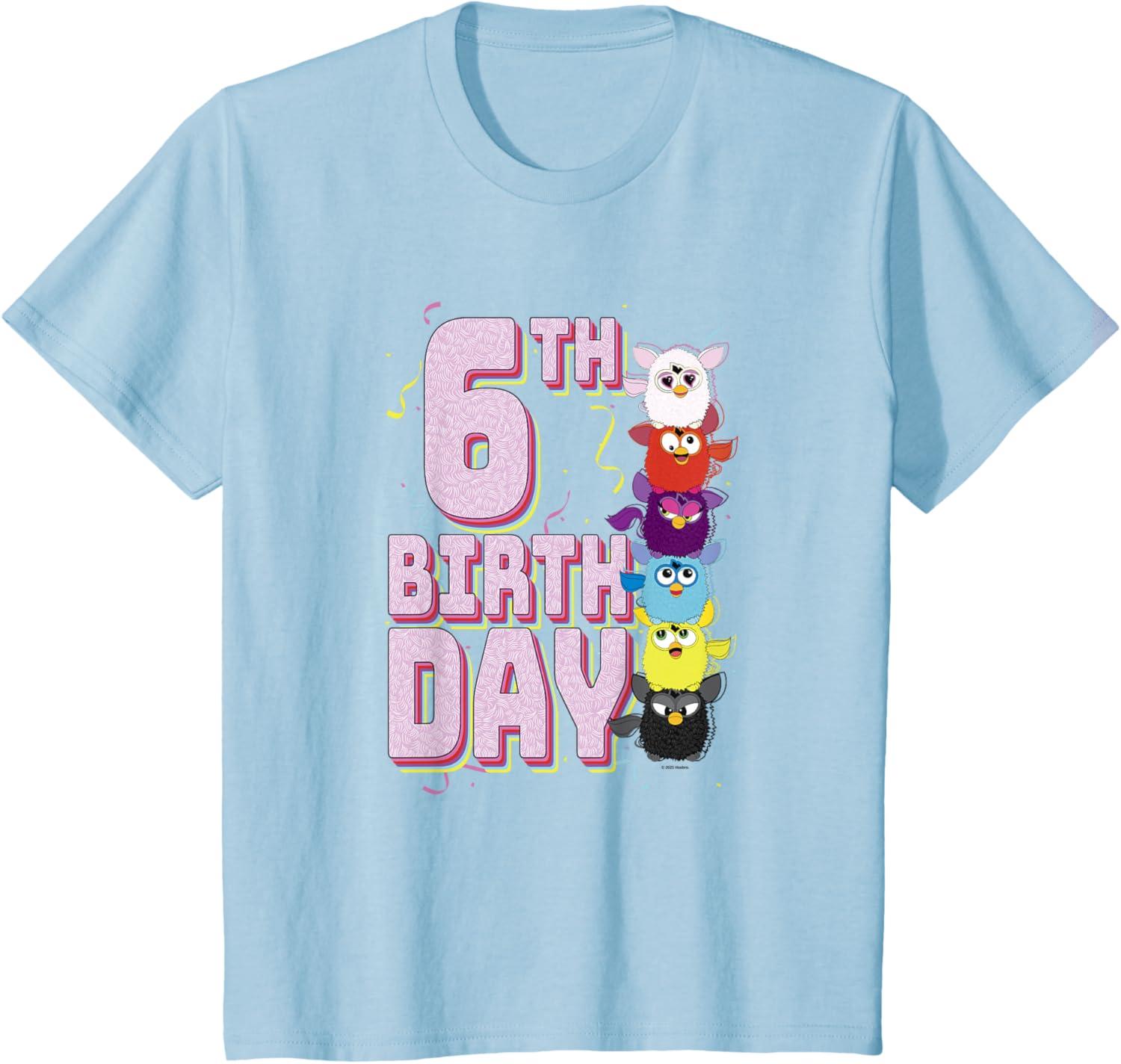 Furby 6th Birthday Stacked Furbies Funny Portrait T-Shirt(White)