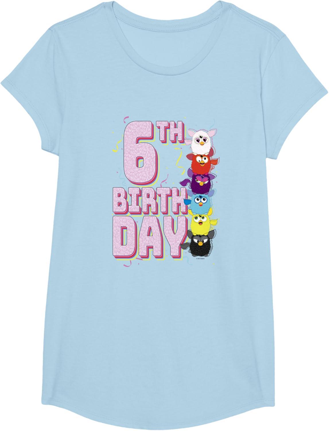 Furby 6th Birthday Stacked Furbies Funny Portrait T-Shirt(Baby Blue)
