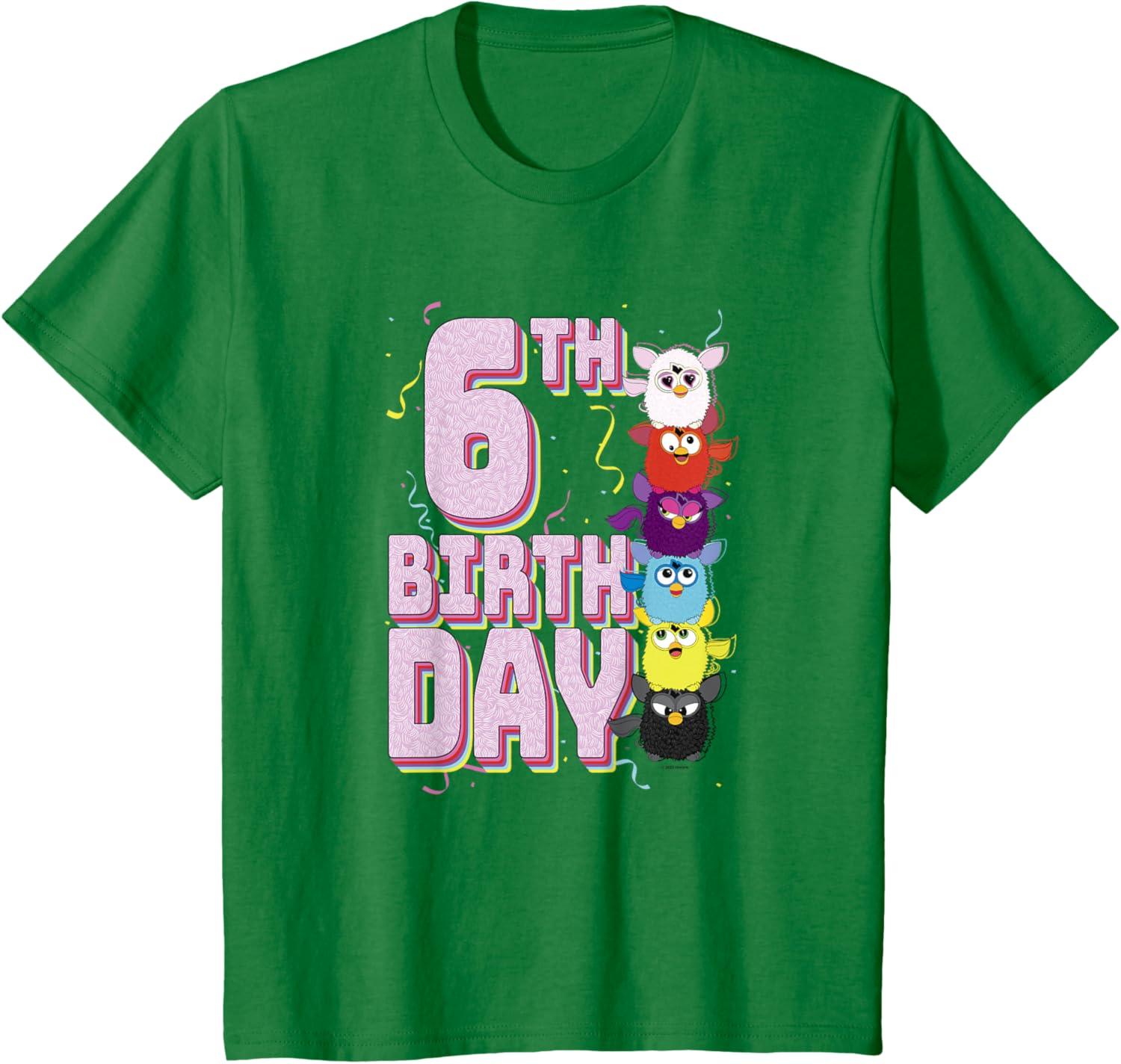 imageFurby 6th Birthday Stacked Furbies Funny Portrait TShirtKelly Green