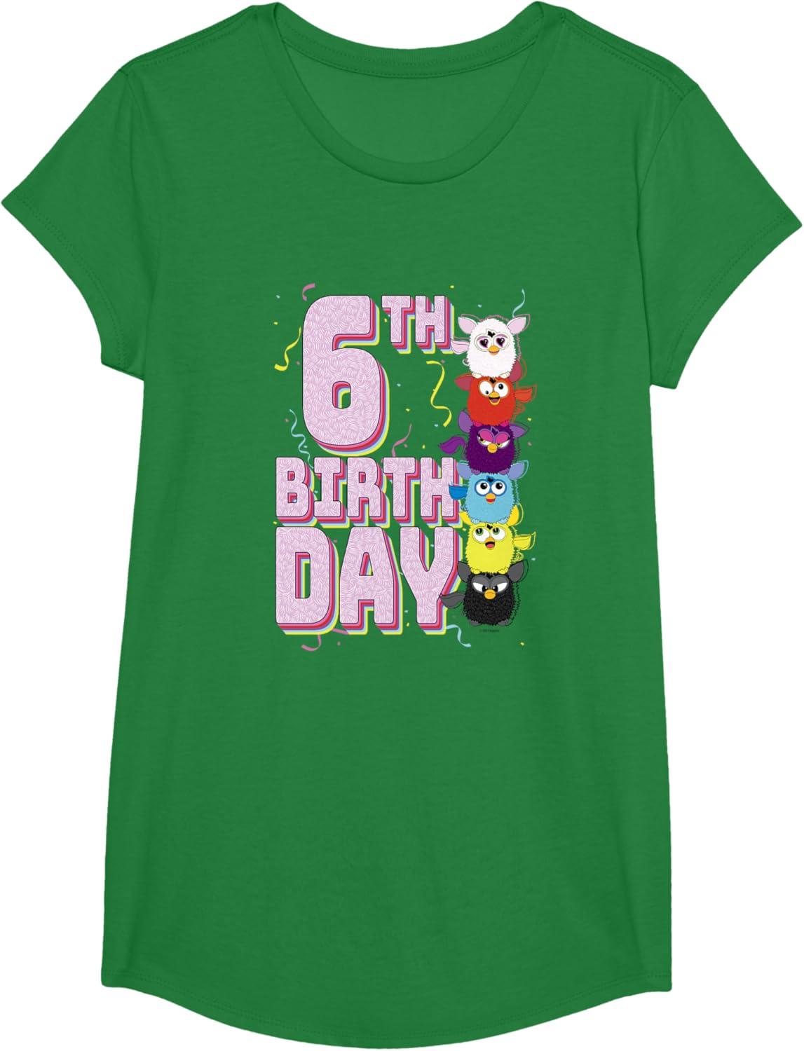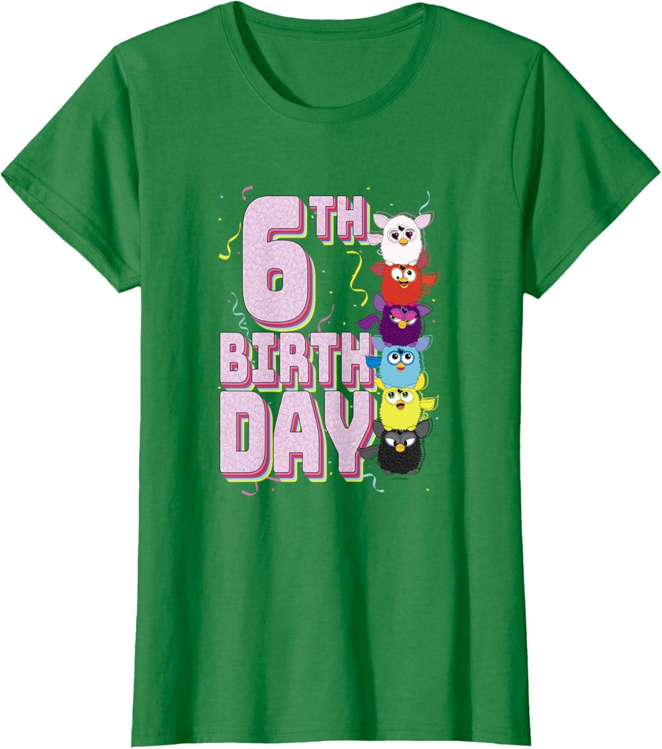 Furby 6th Birthday Stacked Furbies Funny Portrait T-Shirt(Kelly Green)