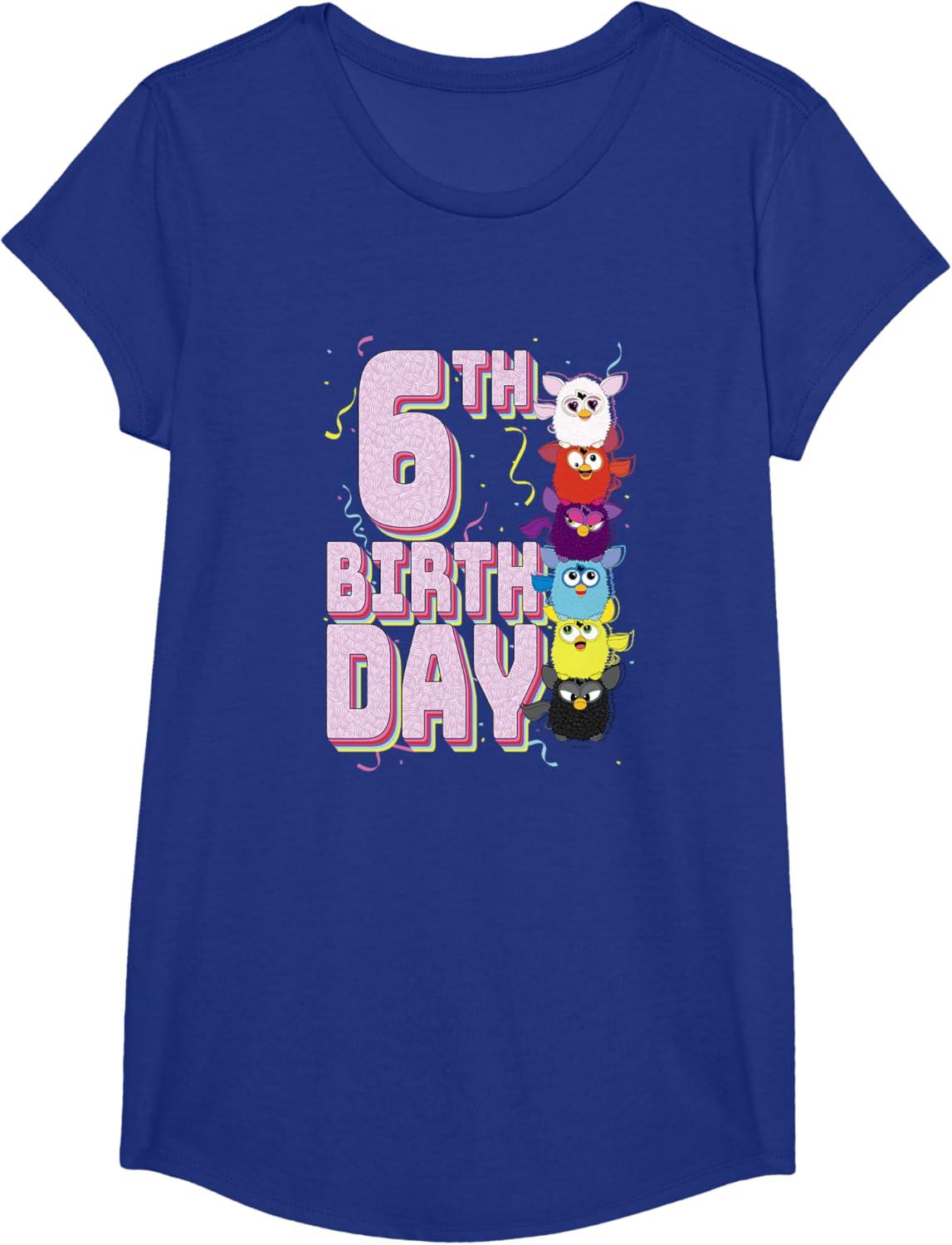 Furby 6th Birthday Stacked Furbies Funny Portrait T-Shirt(Royal Blue)