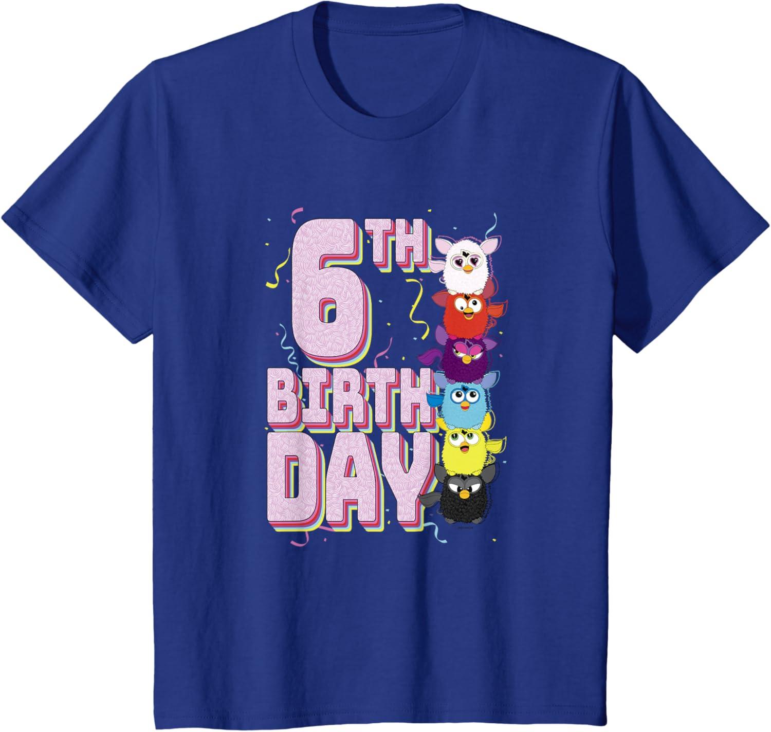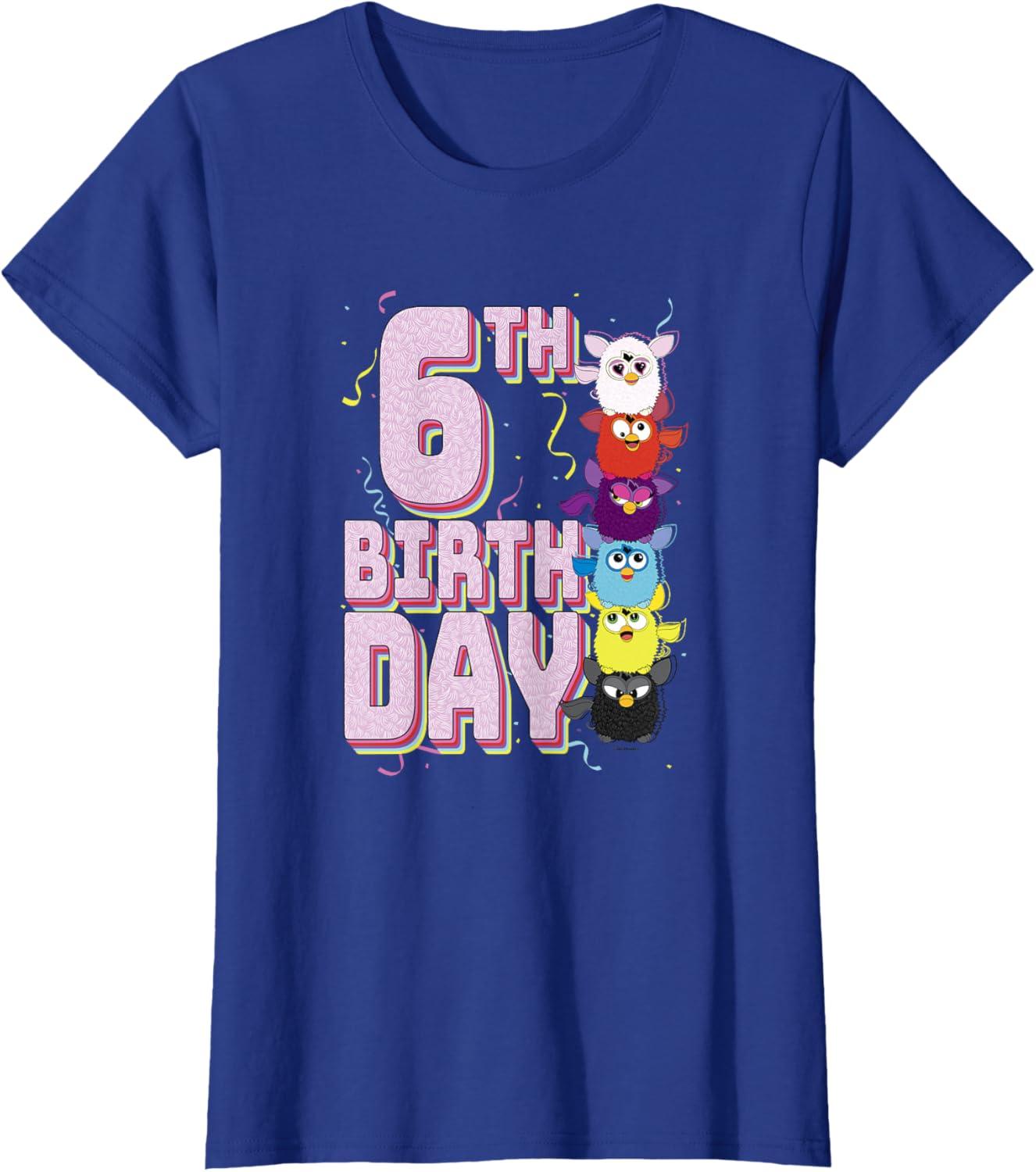 imageFurby 6th Birthday Stacked Furbies Funny Portrait TShirtRoyal Blue
