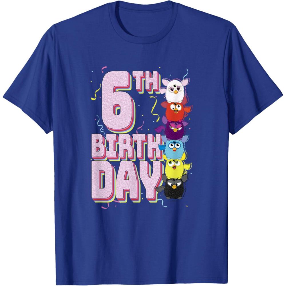 Be the first to review “Furby 6th Birthday Stacked Furbies Funny Portrait T-Shirt(Royal Blue)”
