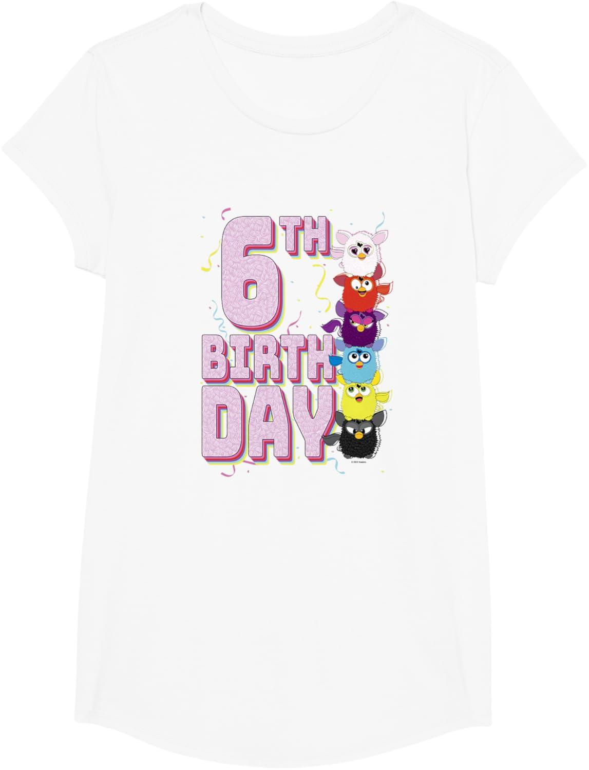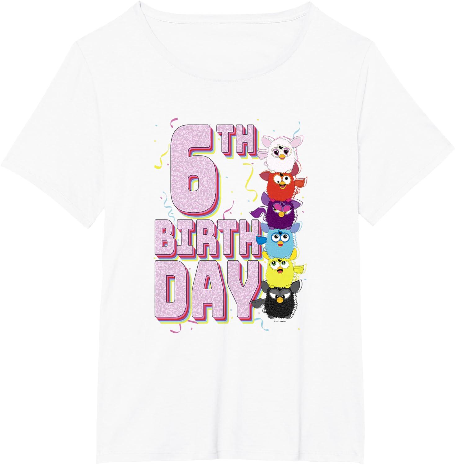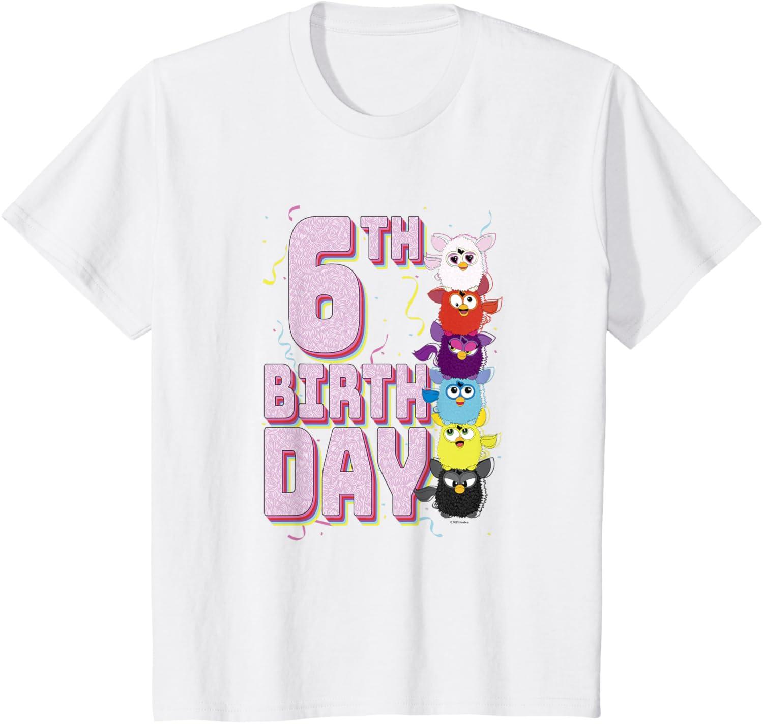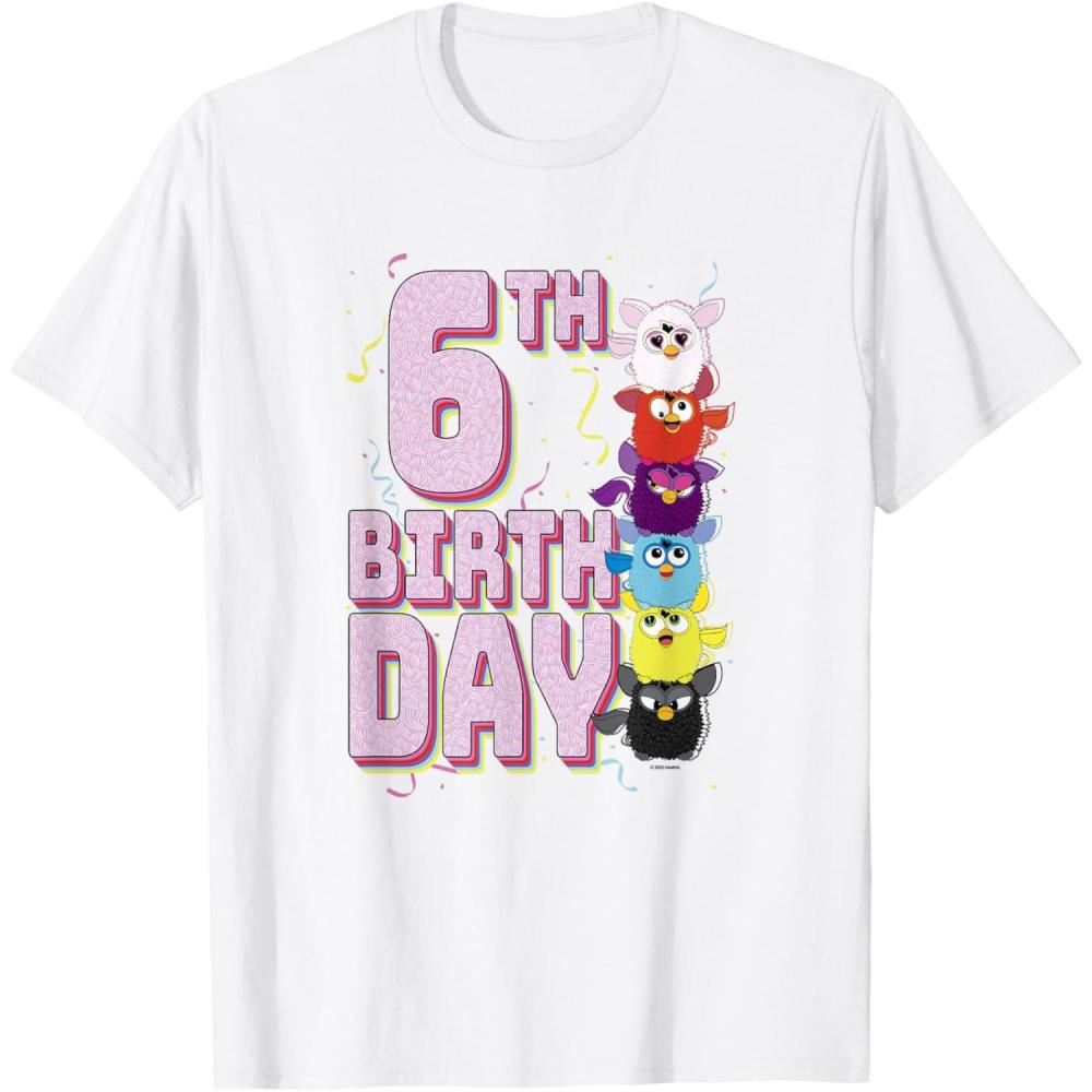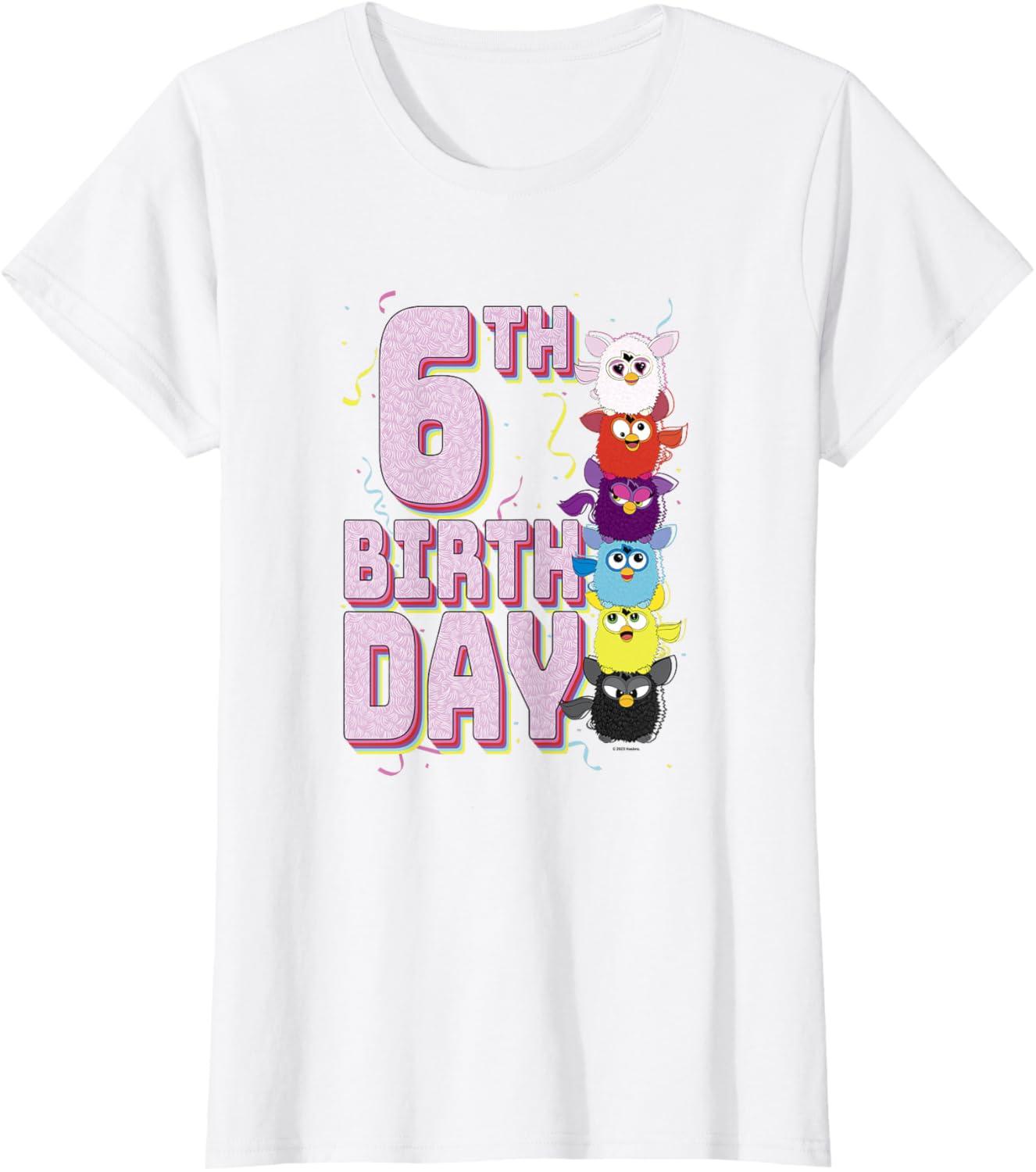 Furby 6th Birthday Stacked Furbies Funny Portrait T-Shirt(White)