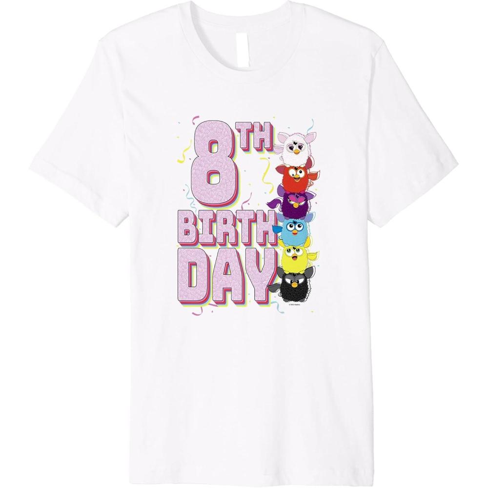 Furby 8th Birthday Stacked Furbies Funny Portrait Premium T-Shirt