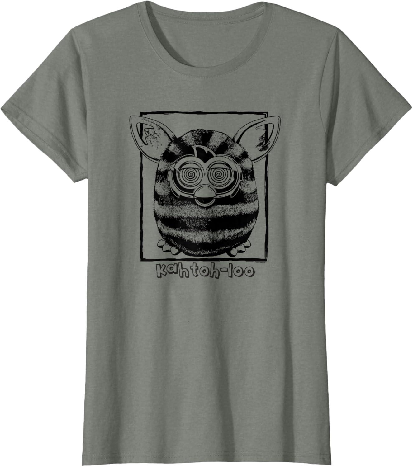 imageFurby Classic KahtohLoo Hypnotizing Eyes Vintage Portrait TShirt  UnisexAdults Kids  Grey  Short Sleeve  Small  Crew Collar  Modern Vintage  Cartoon  Vacation  Classic  TShirtOlive Heather
