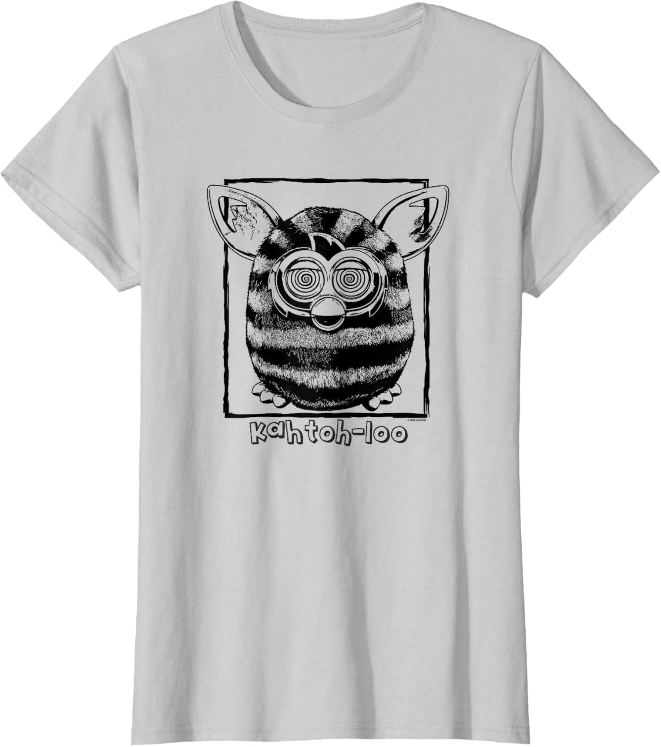 imageFurby Classic KahtohLoo Hypnotizing Eyes Vintage Portrait TShirt  UnisexAdults Kids  Grey  Short Sleeve  Small  Crew Collar  Modern Vintage  Cartoon  Vacation  Classic  TShirtSilver Grey