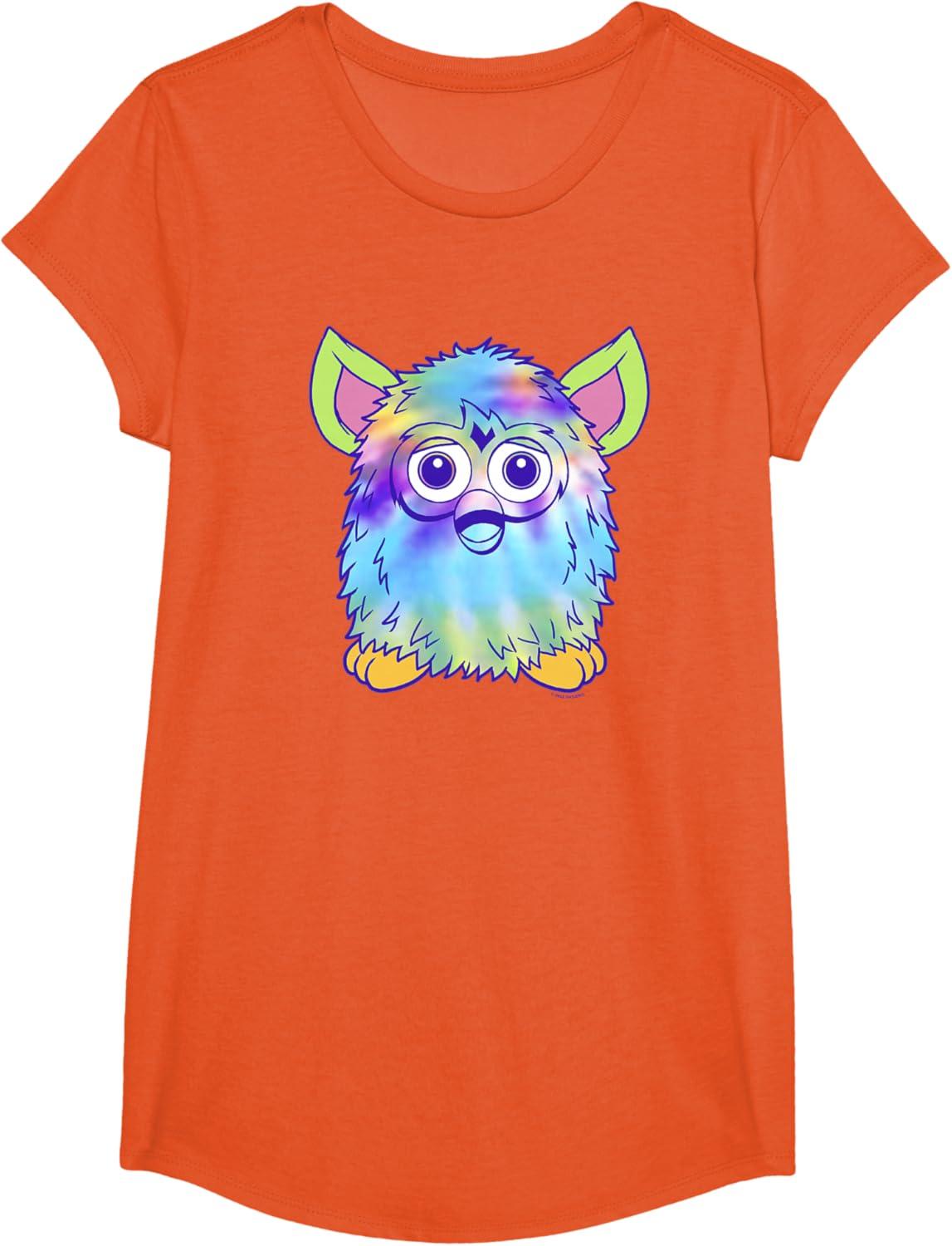 imageFurby Classic Toy Tie Dye Pattern Vintage Smiling Portrait TShirtOrange