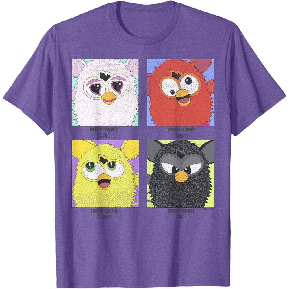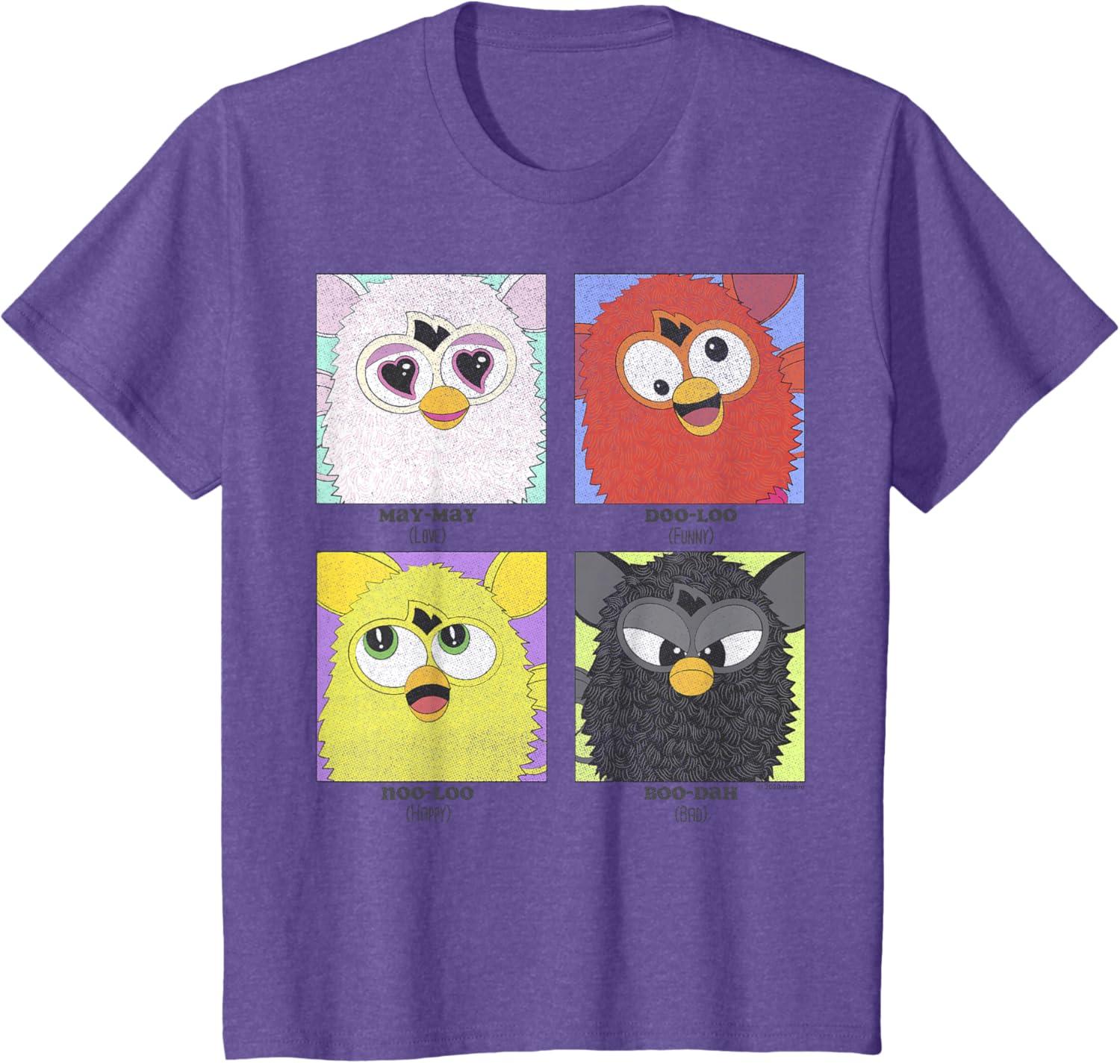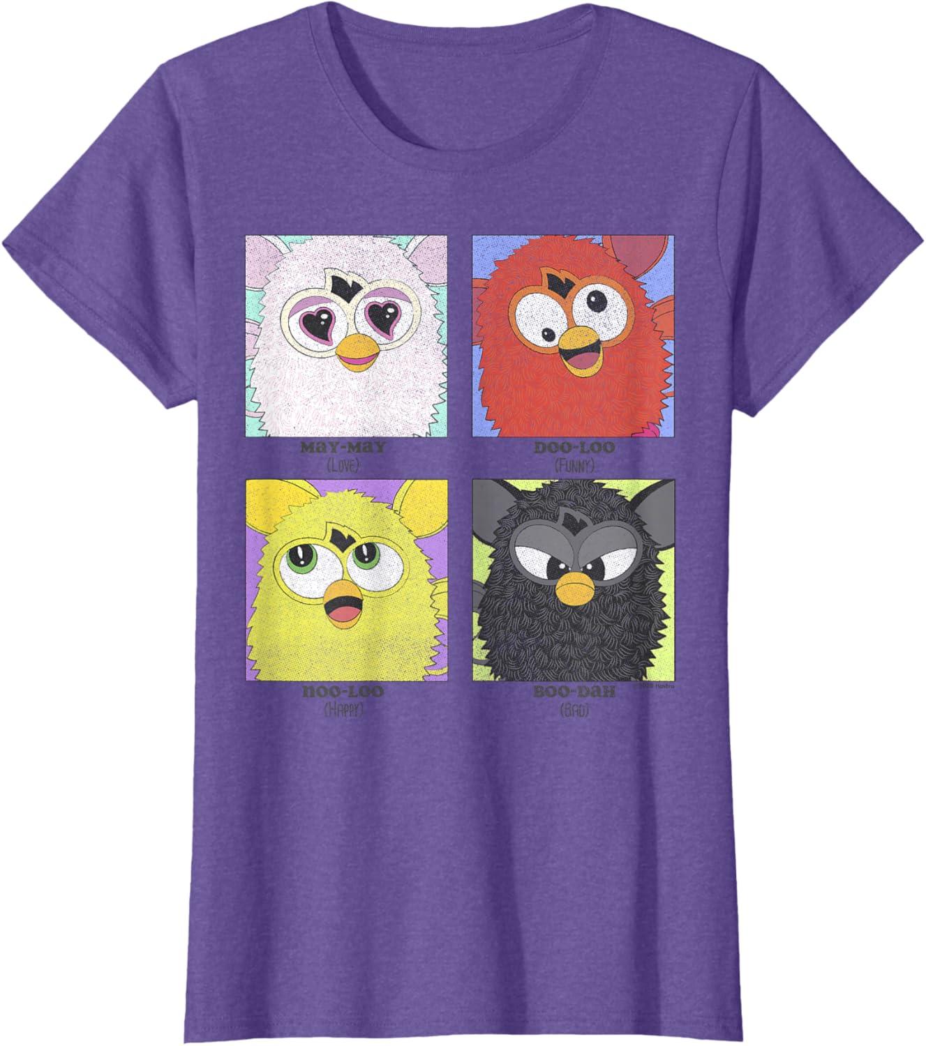 Do you want to play?! Furbish is the first language of these cute and cuddly creatures called Furbies – but give them enough time and they’ll learn English. Put two of them together and they can even have a conversation! You’ll absolutely love these officially licensed Furby graphic tees, tank tops, hoodies, and more!