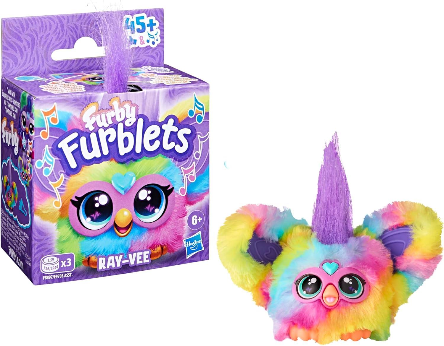 Furby Furblets Ooh-Koo Mini Friend, Rock Music, Speaks Only Furbish, Electronic Plush Toys for Girls & Boys, Interactive Pets, Blue & White, Back to School Gifts, Ages 6+(Ray-vee (Electronica Music))