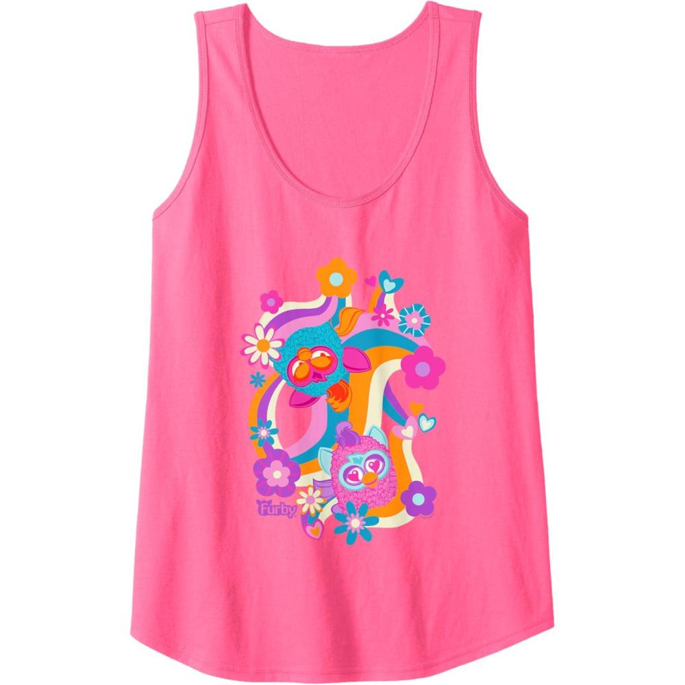 Furby Groovy Vintage 70's Rainbow Floral Waves Poster Tank Top(Neon Pink)