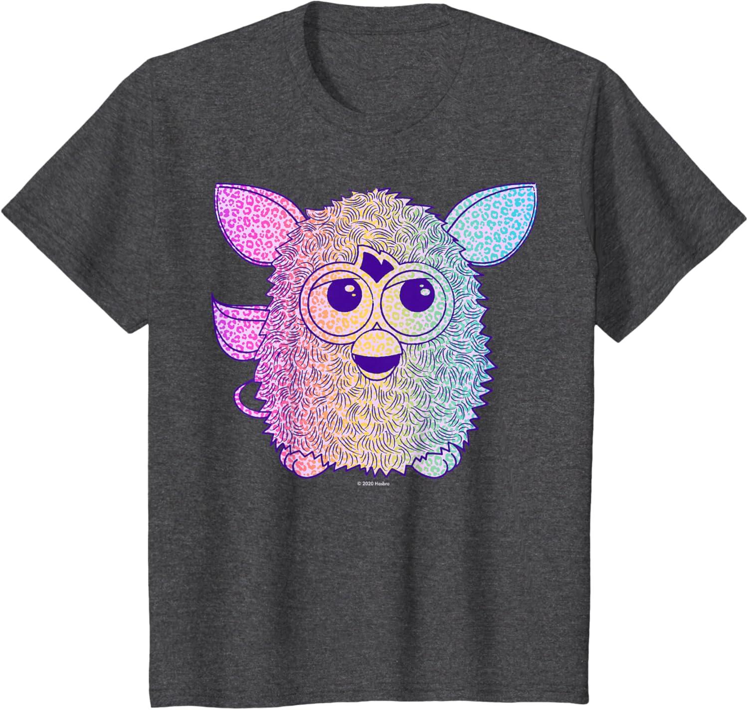 Furby Retro Neon Gradient Big Cute Portrait T-Shirt(Heather Grey)