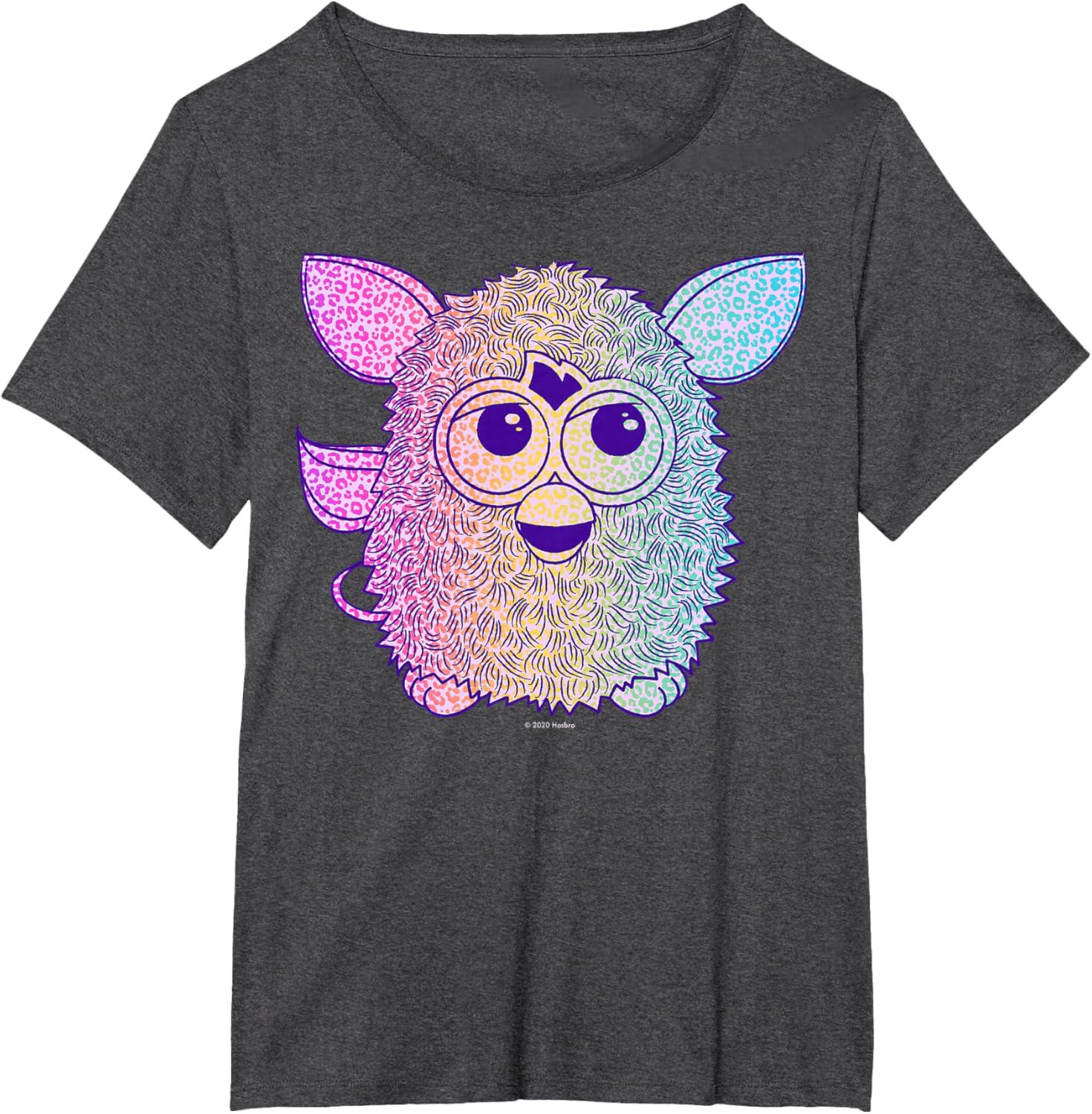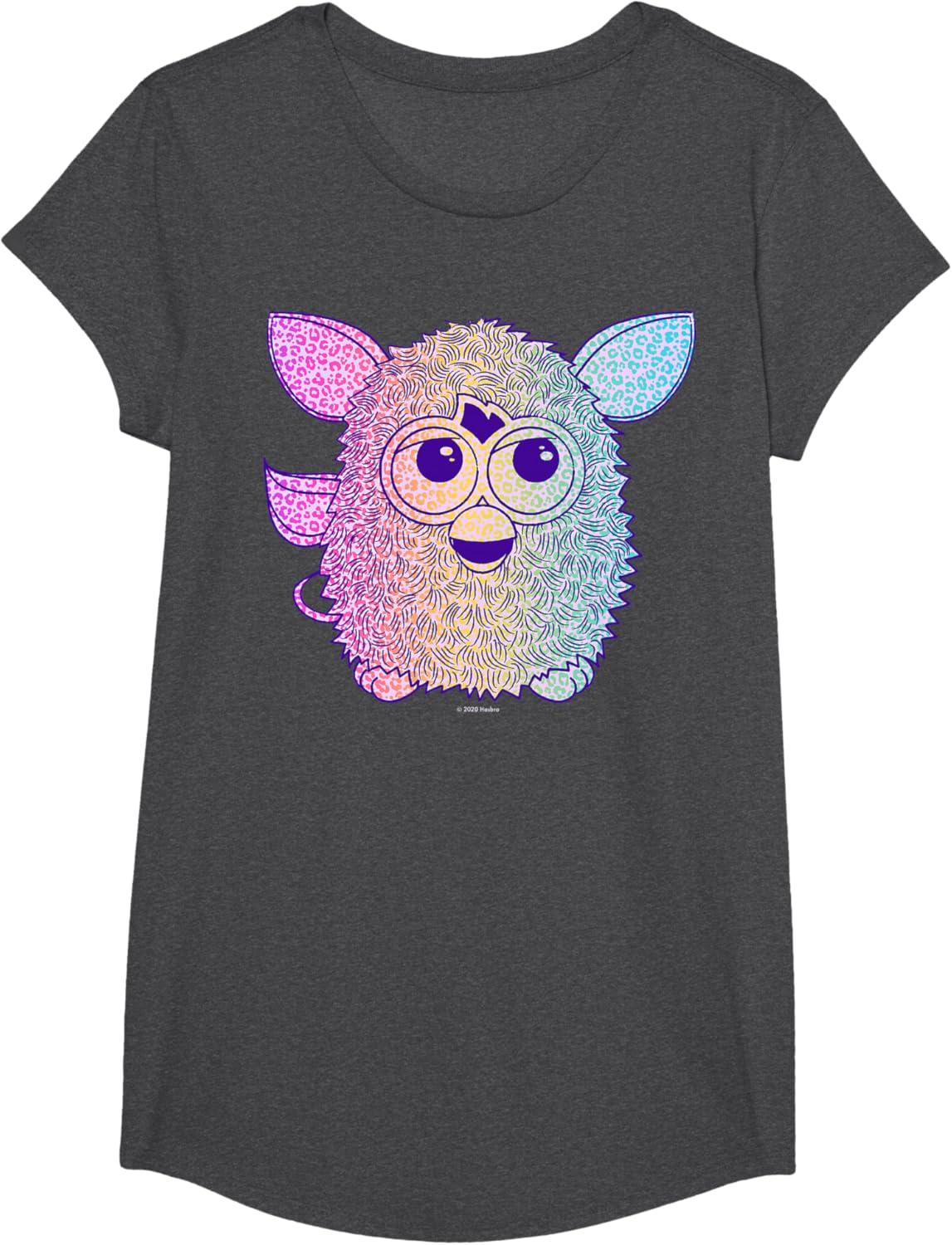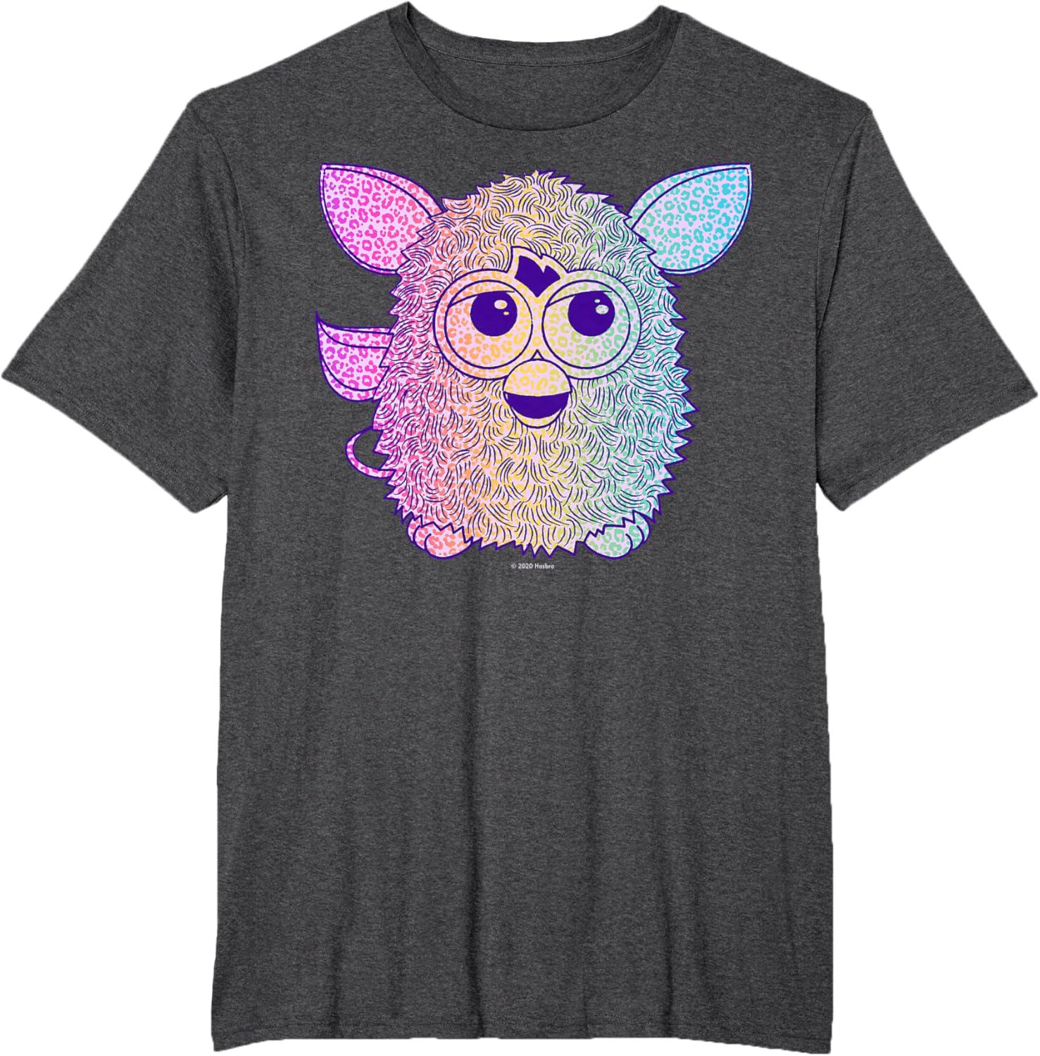 Furby Retro Neon Gradient Big Cute Portrait T-Shirt(Dark Heather Grey)