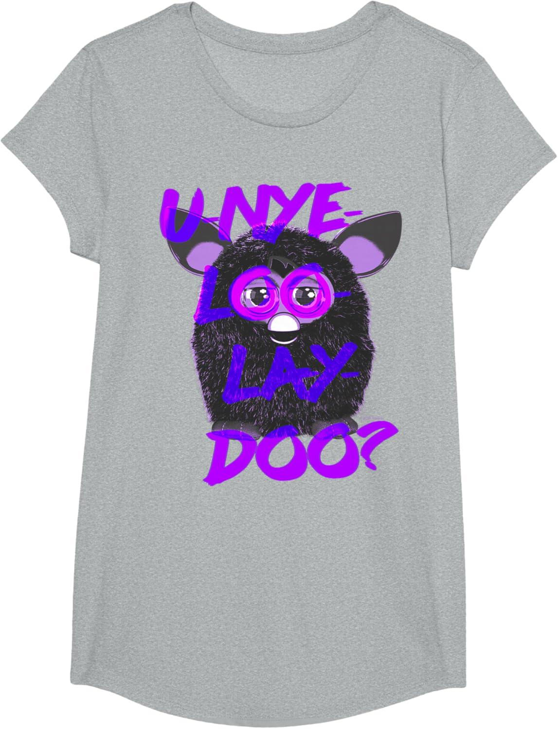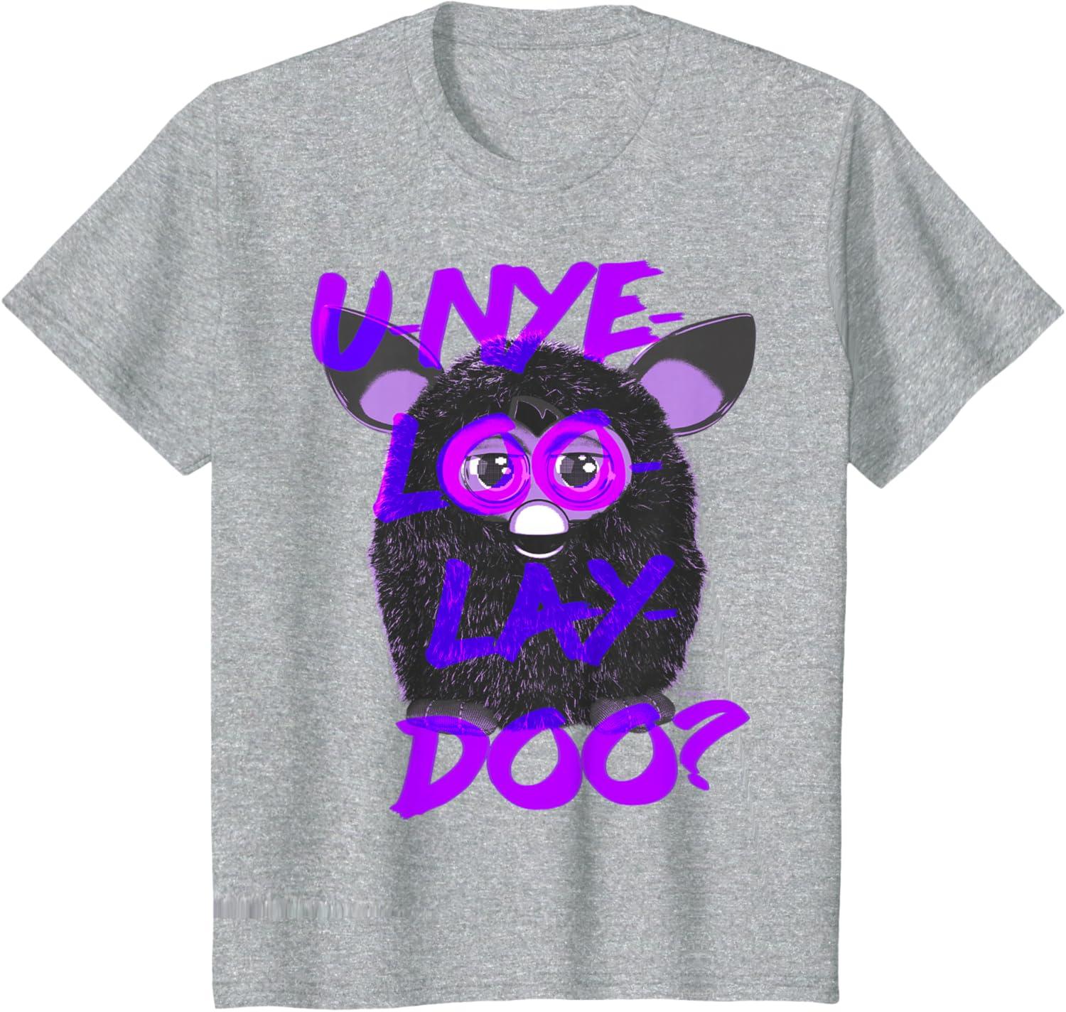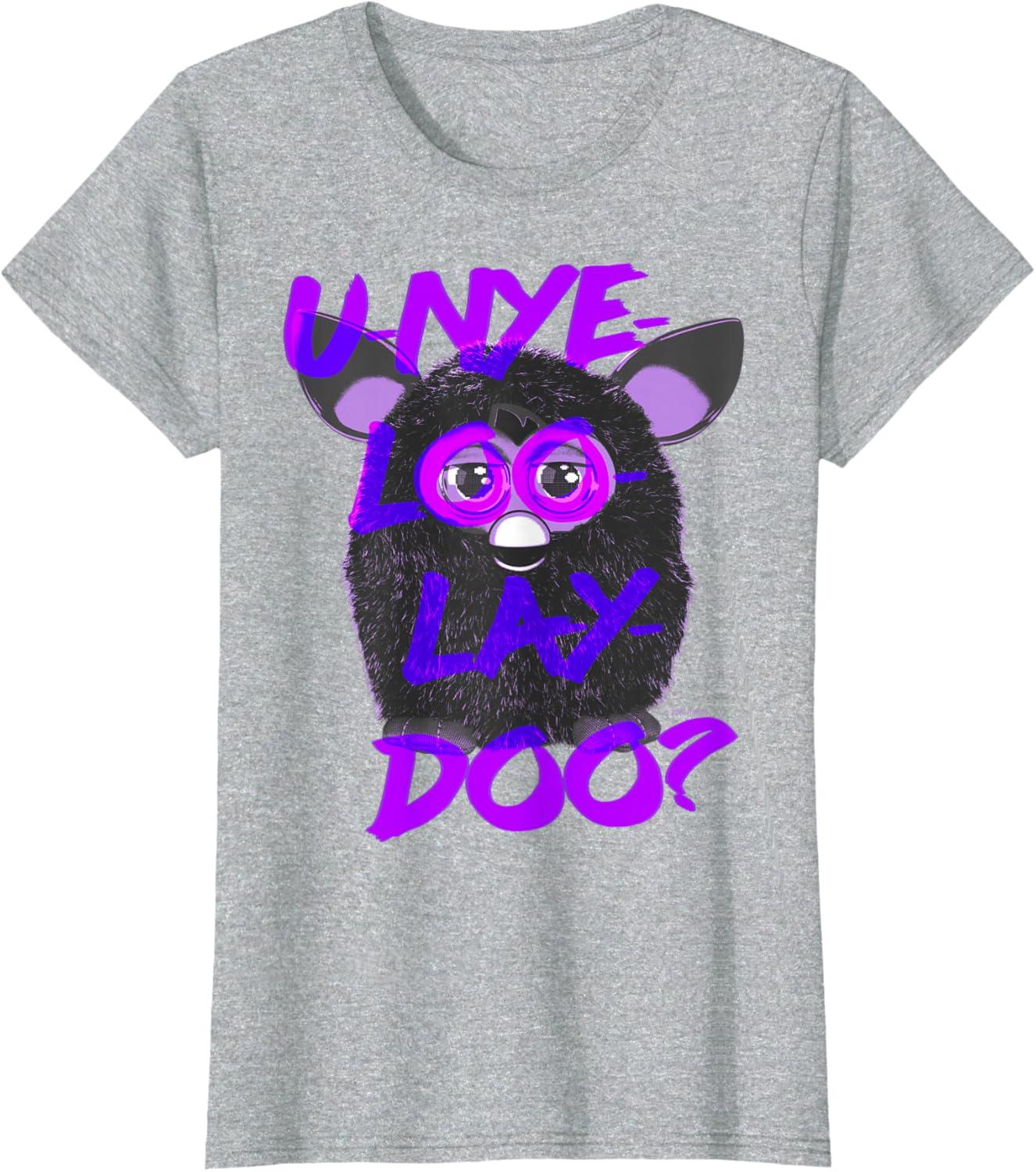 Do you want to play?! Furbish is the first language of these cute and cuddly creatures called Furbies – but give them enough time and they’ll learn English. Put two of them together and they can even have a conversation! You’ll absolutely love these officially licensed Furby graphic tees, tank tops, hoodies, and more!