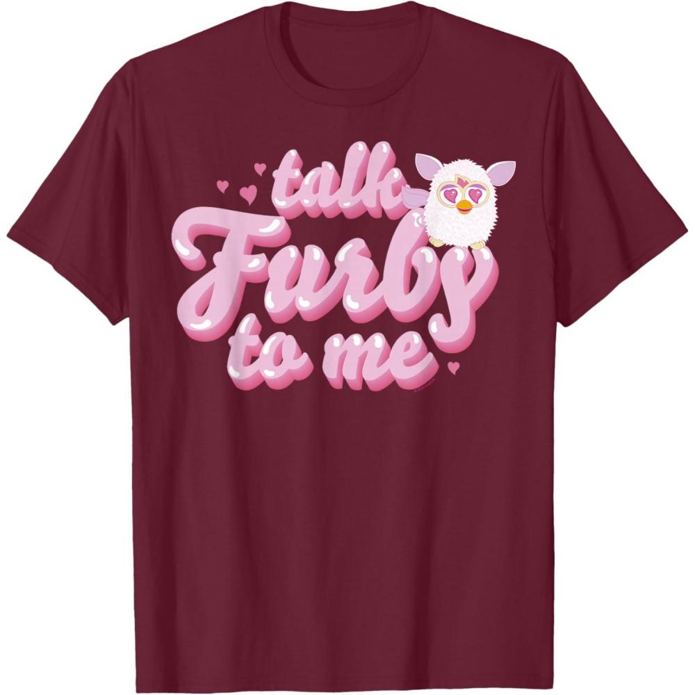 Furby Valentine's Day Talk Furby To Me Cute Hearts Logo T-Shirt(Burgundy)