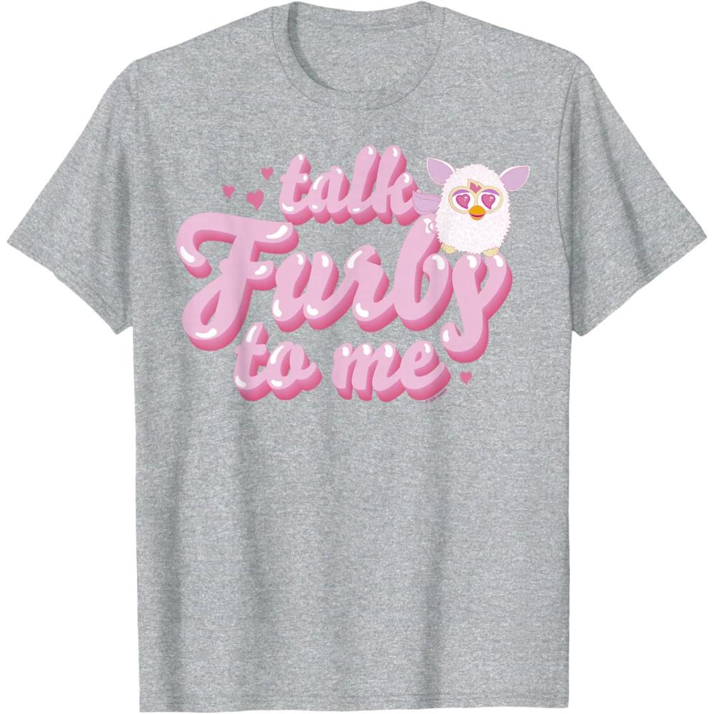 Furby Valentine's Day Talk Furby To Me Cute Hearts Logo T-Shirt(Heather Grey)