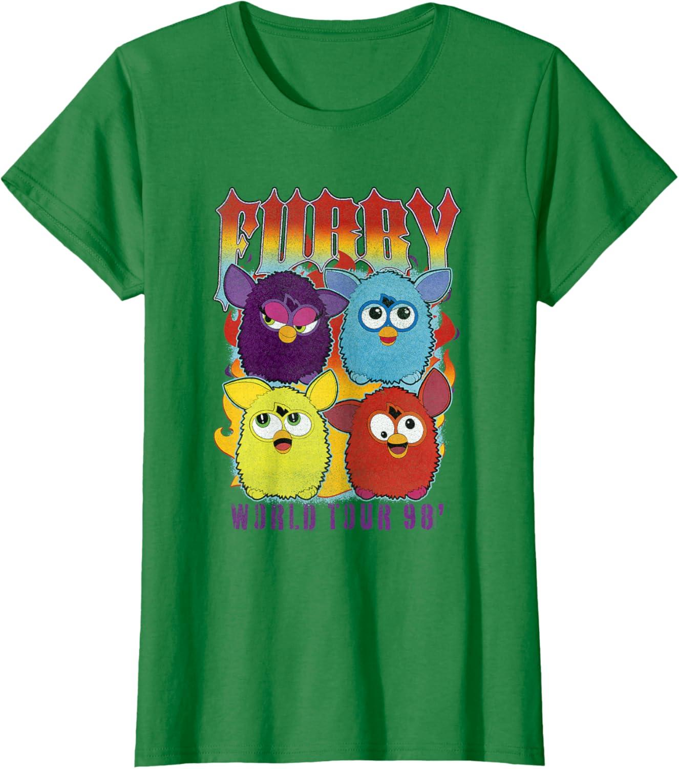 Be the first to review “Furby Vintage Classic World Tour Rainbow Neon Rock Poster T-Shirt(Kelly Green)”