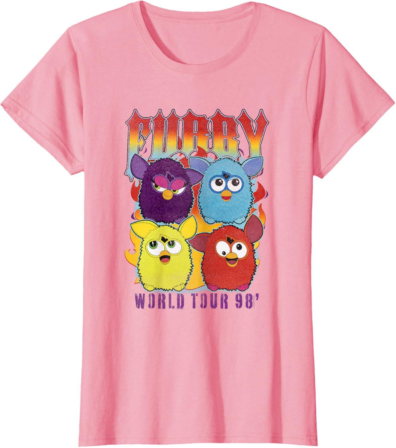 Furby Vintage Classic World Tour Rainbow Neon Rock Poster T-Shirt(Pink)