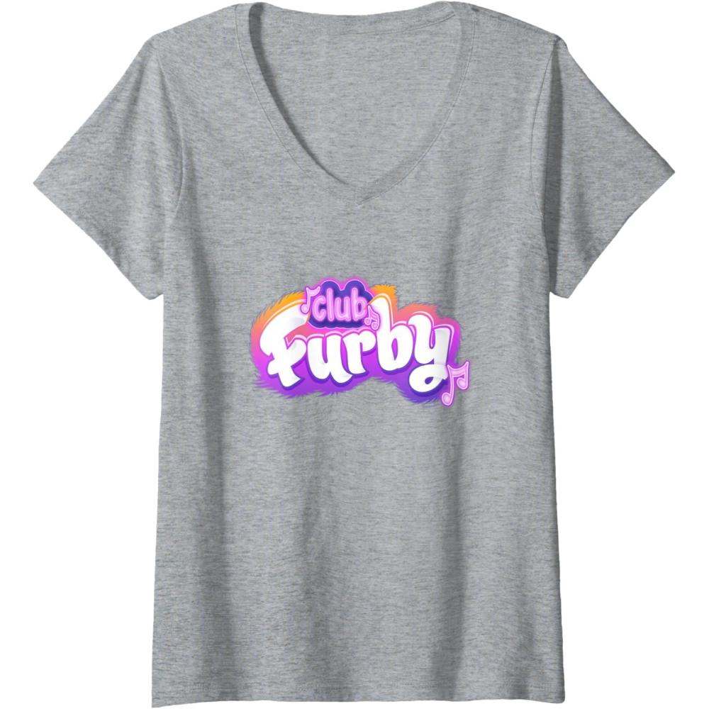 Be the first to review “Womens Furby Club Furby Colorful Gradient Musical Notes Furry Logo V-Neck T-Shirt(Heather Grey)”